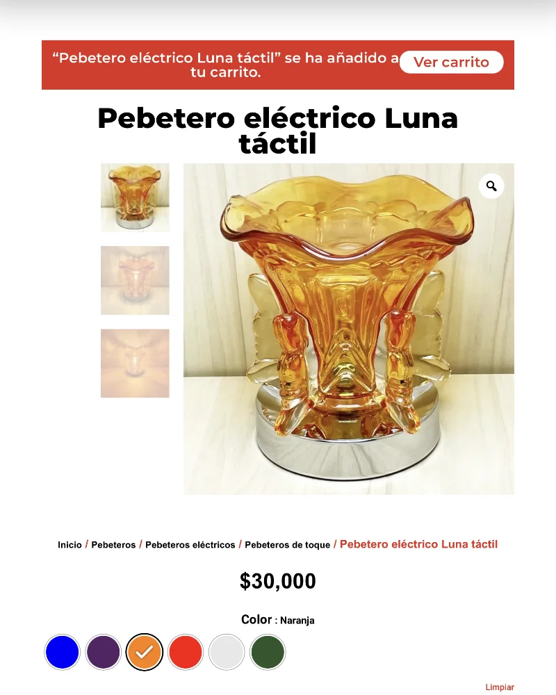 Cuando ingreses en la página de un producto, podrás ver imágenes descriptivas, textos con la descripción, cuidados, precauciones y usos de este. También, las diferentes opciones que cada producto puede tener, como: forma, color o diseño. Además, en la página del producto podrás seleccionar cuantas unidades vas a comprar.