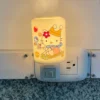 Con su caperuza de porcelana decorada y una base que se conecta directamente a la toma eléctrica de la pared, este pebetero es ideal para habitaciones infantiles o cualquier lugar donde desees aportar un aire lúdico y acogedor. Su luz suave y cálida, junto con el aroma de tus esencias favoritas, crea una atmósfera relajante y divertida.